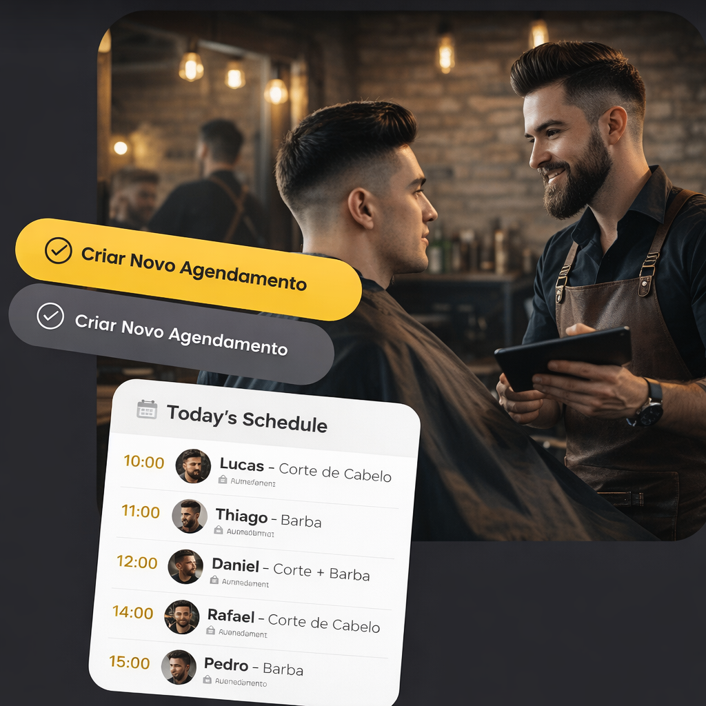 Gerencie agendamentos, clientes e horários da sua barbearia direto do celular ou computador. Tenha controle total da sua agenda em poucos cliques.